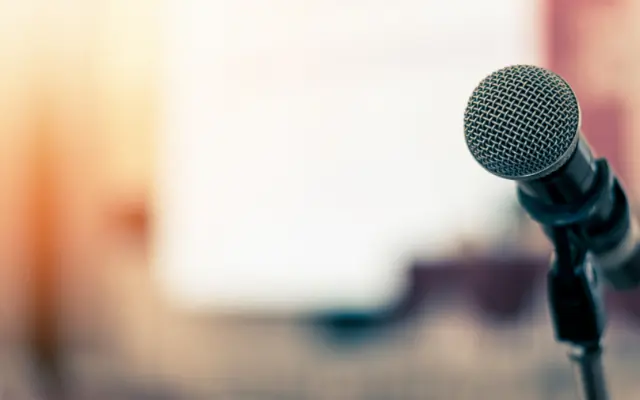 ワイヤレスマイク・スタンドマイクのご用意、プロジェクター接続可能なスクリーンを完備しております。