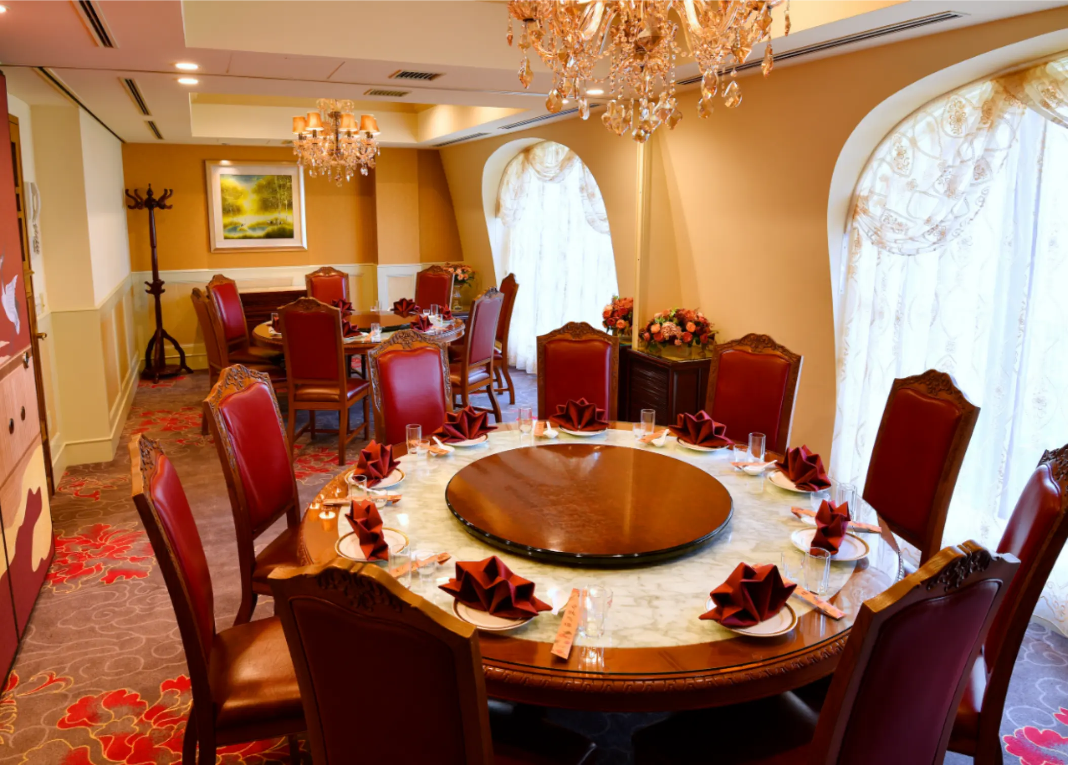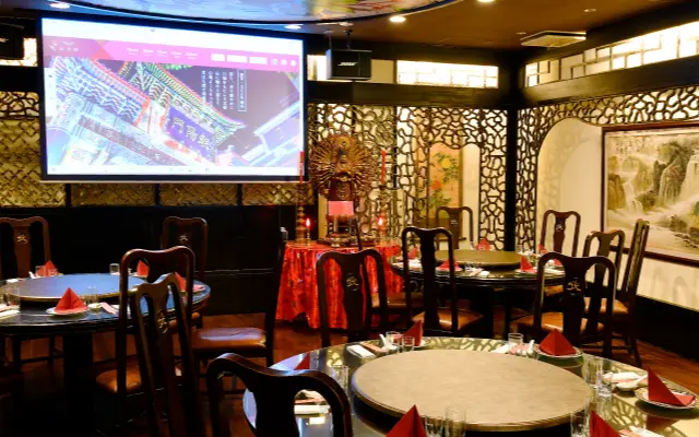 結婚披露宴やご会食の後の二次会にも、状元樓の大宴会場をご利用いただけます。広々とした空間に円卓を配した会場は、最大100名様までご着席可能。華やかな雰囲気と落ち着きのある内装が、和やかで心地よい時間を演出いたします。