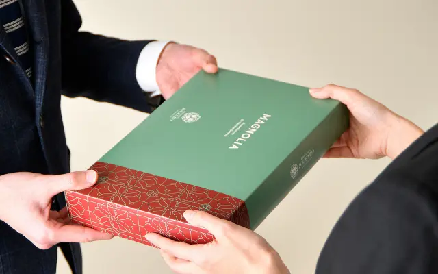 ご法要やご会食の際の引き出物として、状元樓ならではの中華エッセンスをかけ合わせた「PâtissièresJOGENRO」特製の洋菓子をご用意しております。フランス菓子の技法を基盤に、上質な素材を選び抜き、ひとつひとつ丁寧に仕上げた洋菓子は、幅広い世代の方に喜ばれる逸品です。