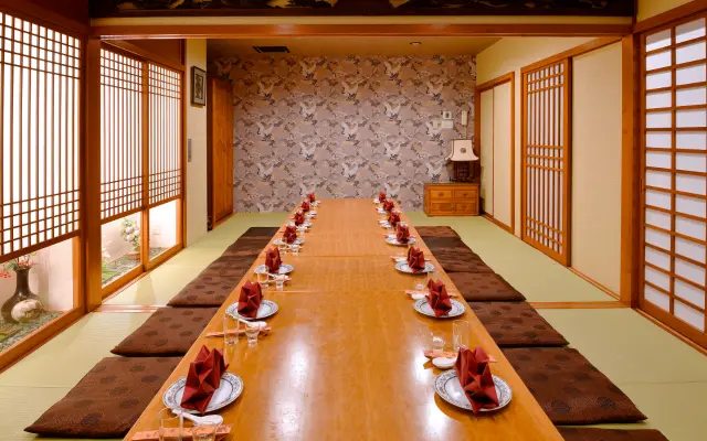気品あふれるインテリアと落ち着いた雰囲気は、ご法要・ご法事をはじめ、結婚披露宴、ご家族の慶事、企業のご会食など、幅広いシーンにふさわしい空間です。他に円卓・ご人数様に合ったお部屋もご用意しております。